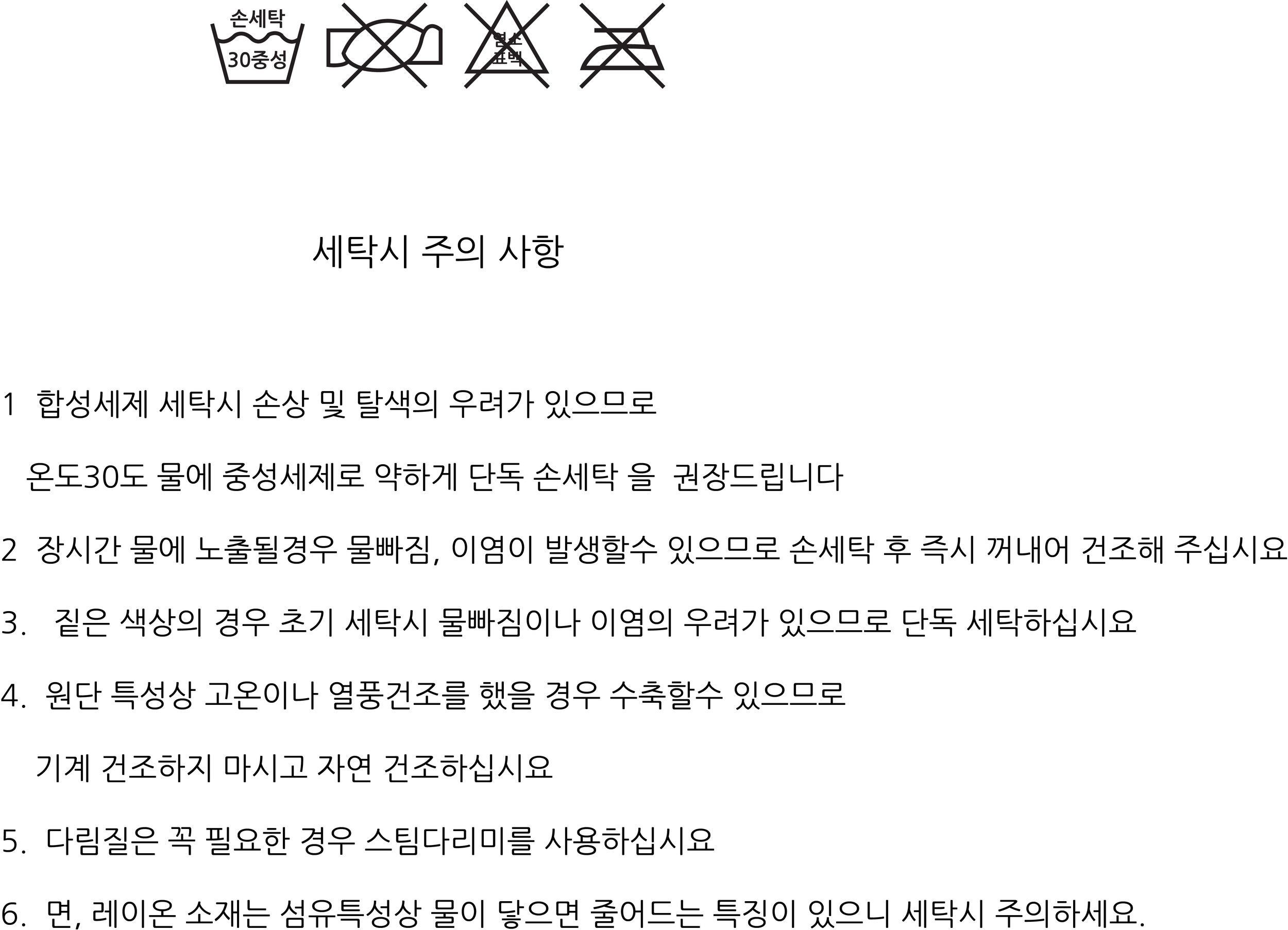► 고온 세탁및 건조기 사용은 피햬주세요