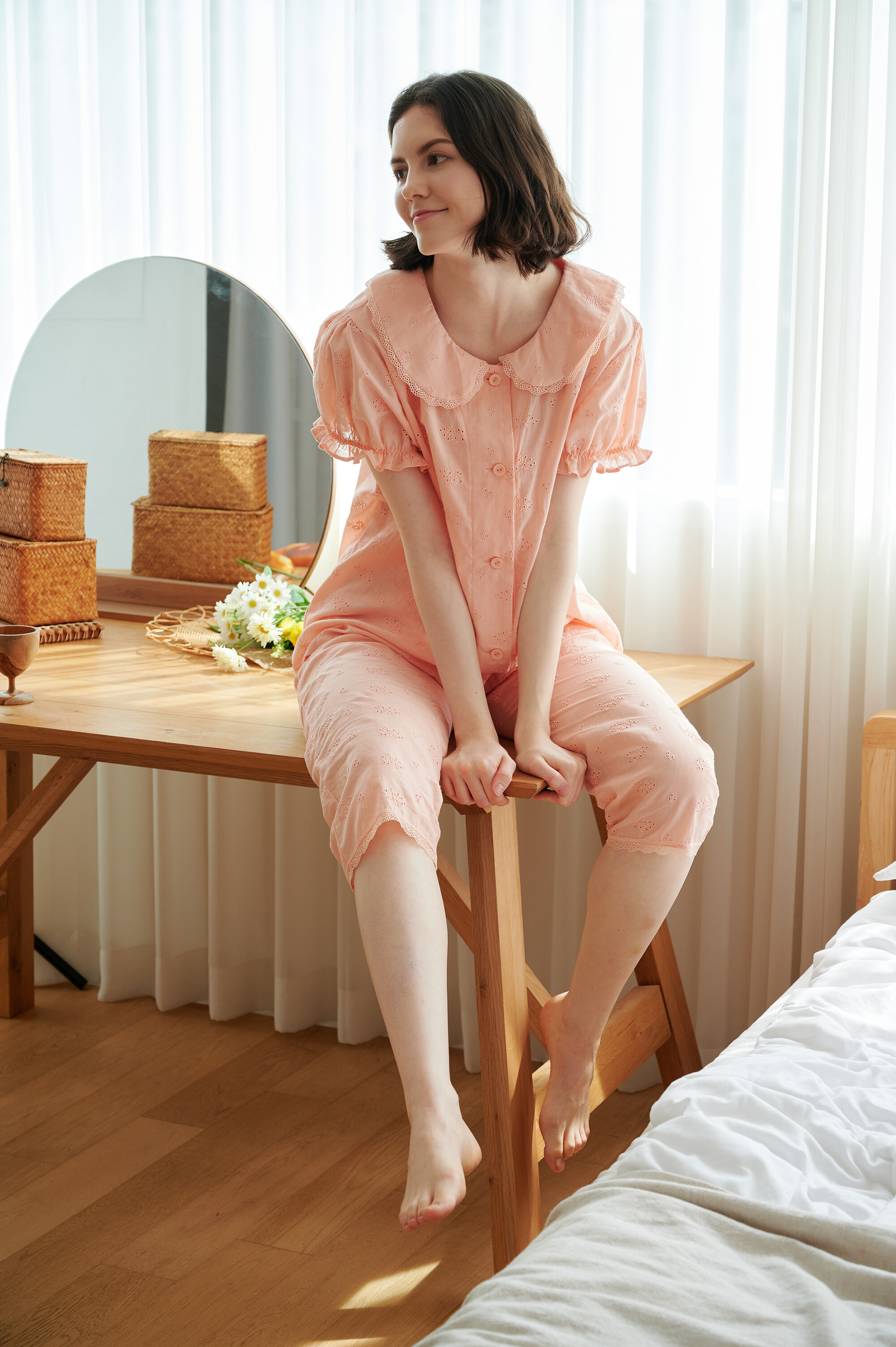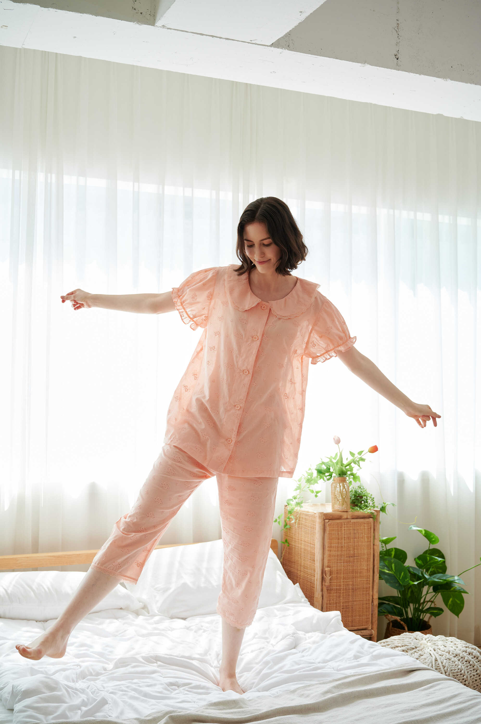 60수 아사 순면 자수 원단으로 가볍고 시원하여 봄부터 가을까지 쾌적한 착용감을 유지해줍니다.
