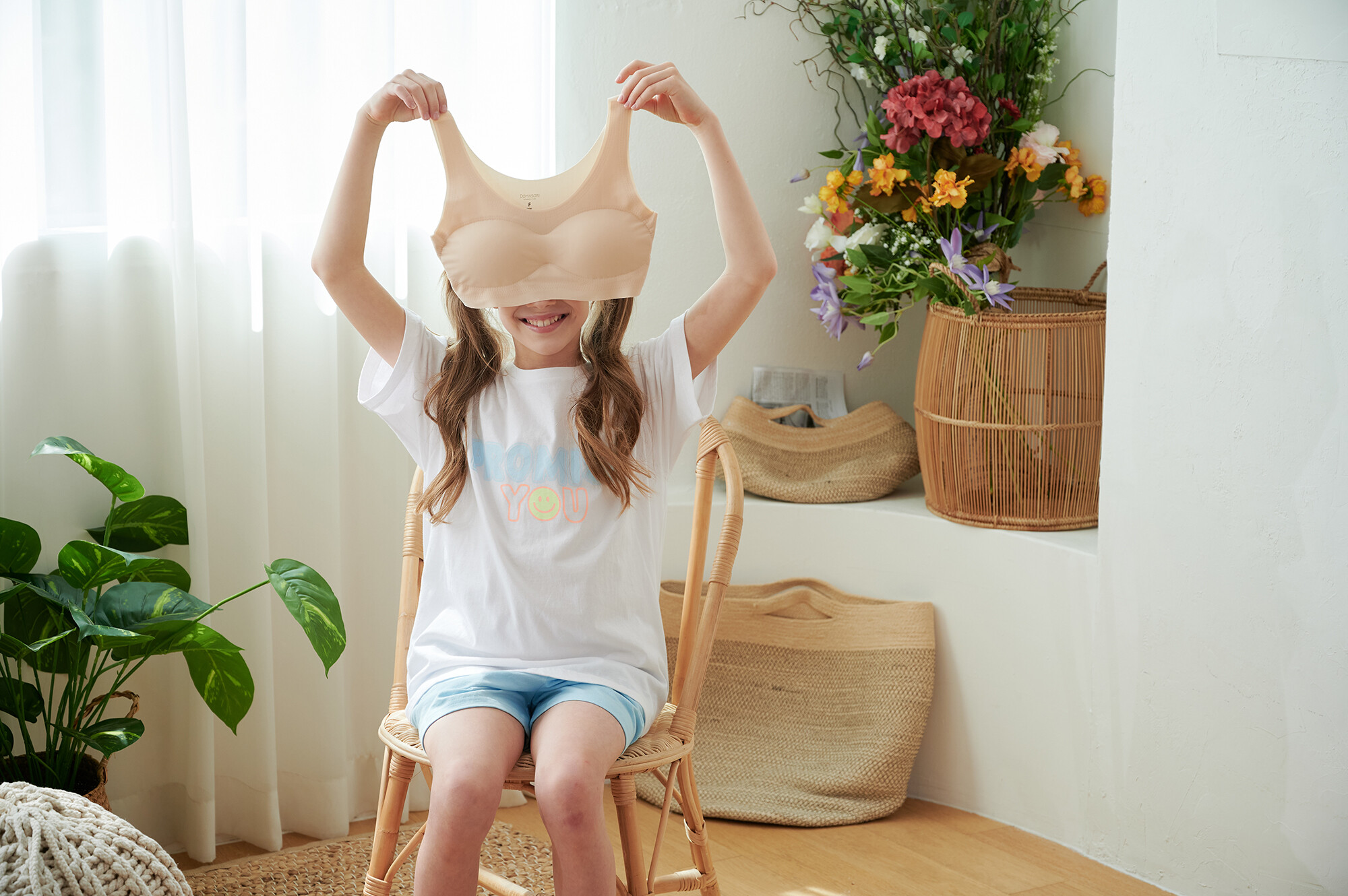 무봉, NO 와이어, NO 후크 로 입었을때 겉옷에 티나지 않아 아이들이 부끄러워 하지않고 착용할수 있어요.