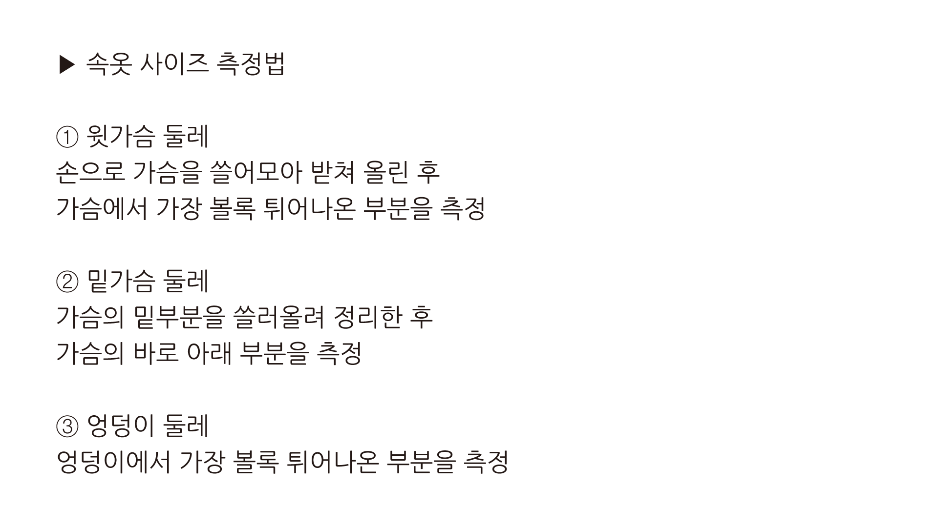 - 속옷제품의 경우 위생상의 이유로 단순변심이나 착장후 교환 .반품이 불가하오니 신중한 구매 부탁드니다.